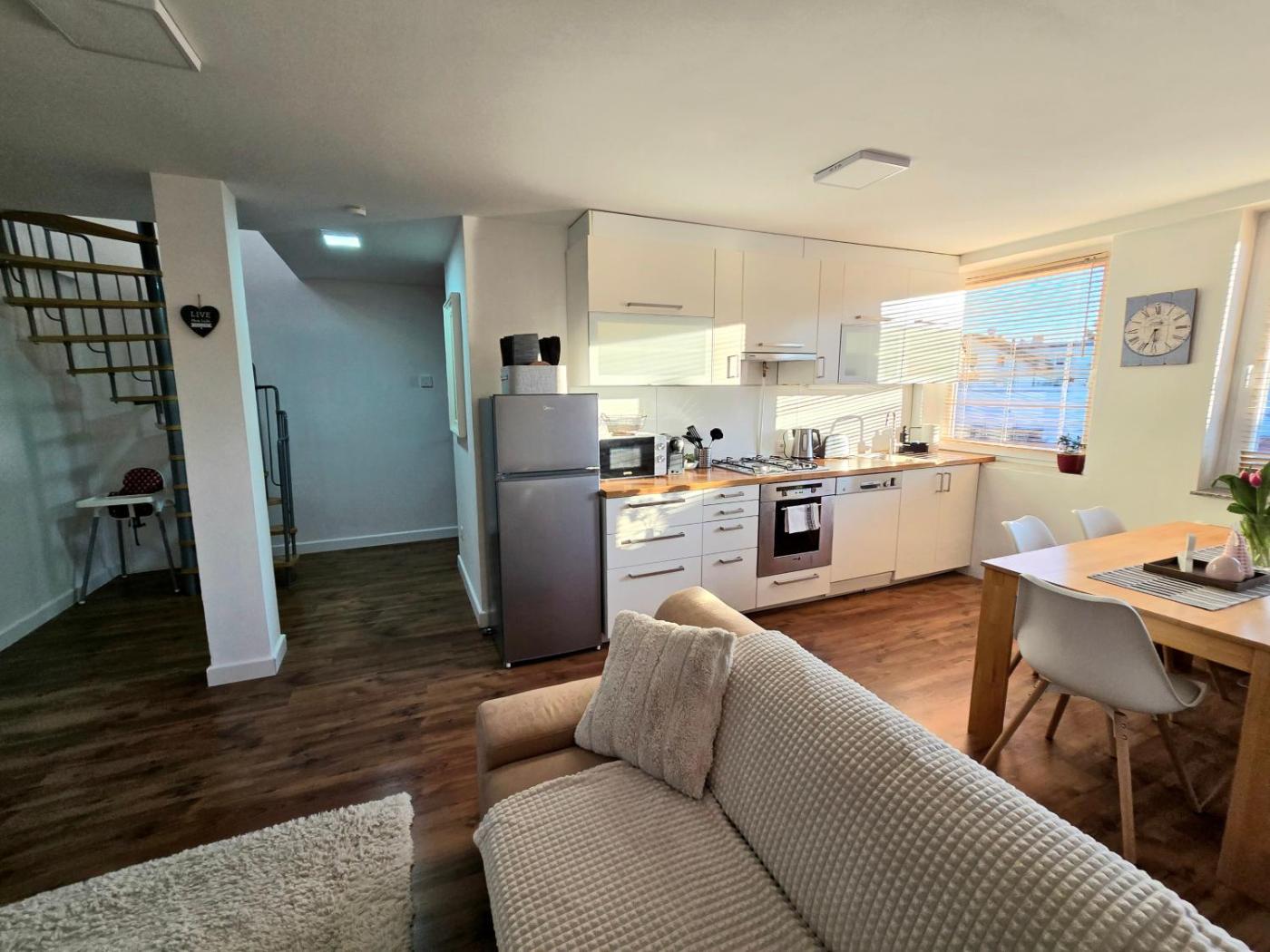 One-Bedroom Apartment. This spacious apartment comes with 1 bedroom, a kitchen and 2 bathrooms with a bath. The apartments kitchen is available for cooking and storing food. This apartment is air-conditioned and has a flat-screen TV, a washing machine and heating. The unit has 4 beds.